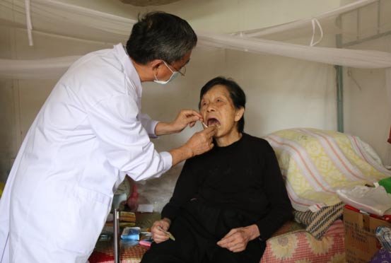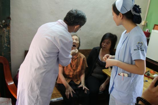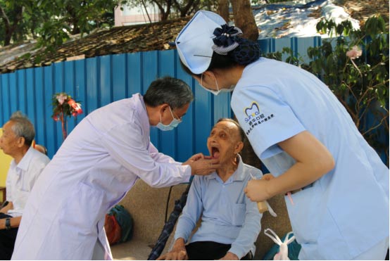穗華口腔醫院主任李霽林為老人檢查牙齒