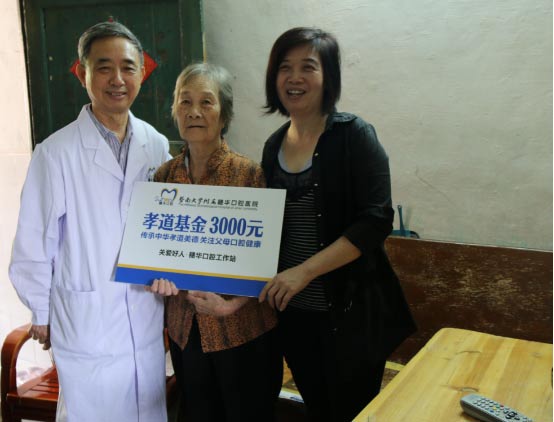 今天義診日,暨南大學附屬口腔醫院為傳承中華孝道美德,同時落實貫徹落實由廣州市天河區文明委、廣州市文明辦、天河好人志愿服務隊、穗華口腔醫院聯合主辦“微笑廣州大型口腔健康公益行”活動,特為孤寡、獨居以及失獨老人送去慰問金3000元,也同時呼吁子女“傳承中華美德、關注父母口腔健康”,希望天下的老人都老有所依、老有所樂。
